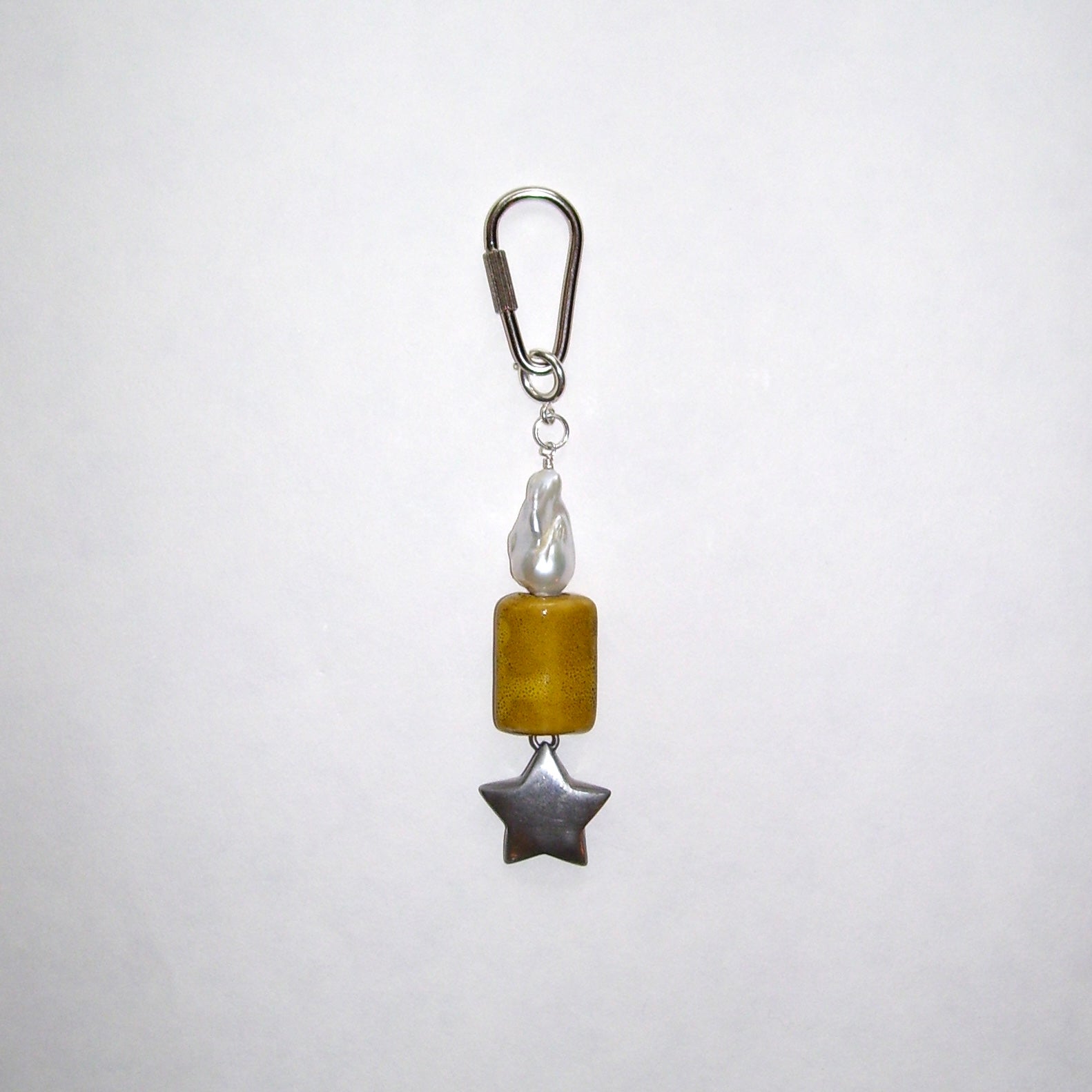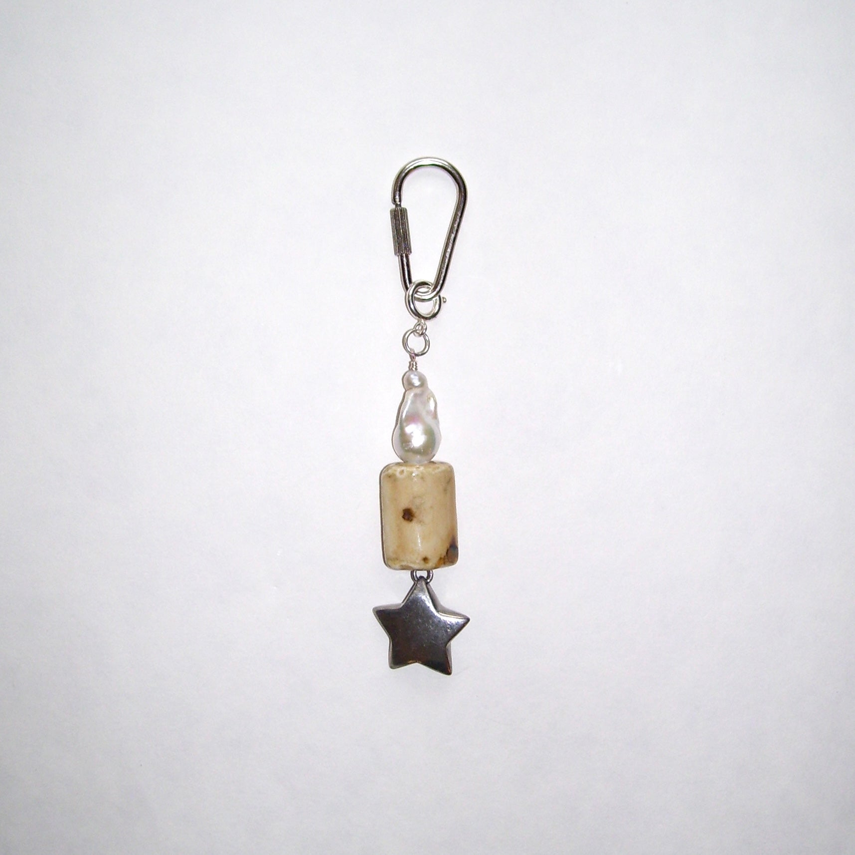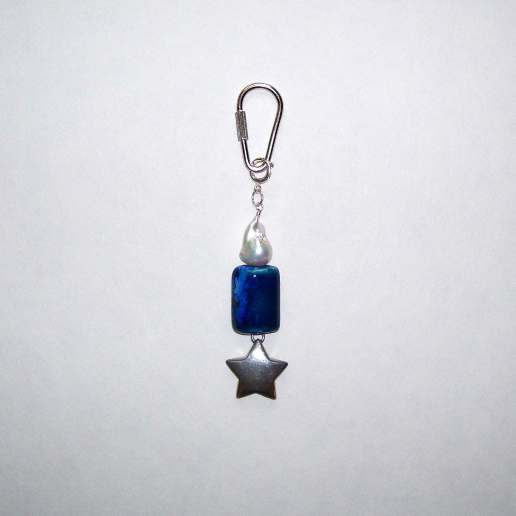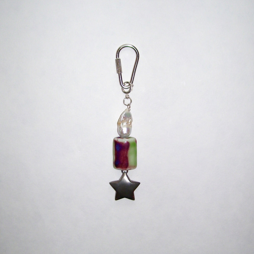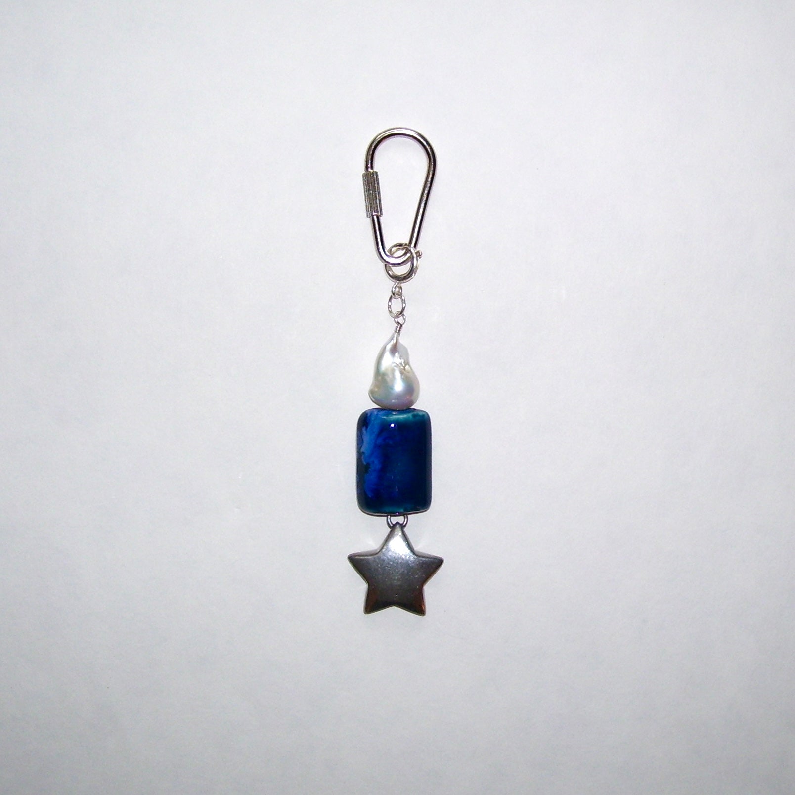 Vintage sterling silver star pendant, ceramic, baroque pearl