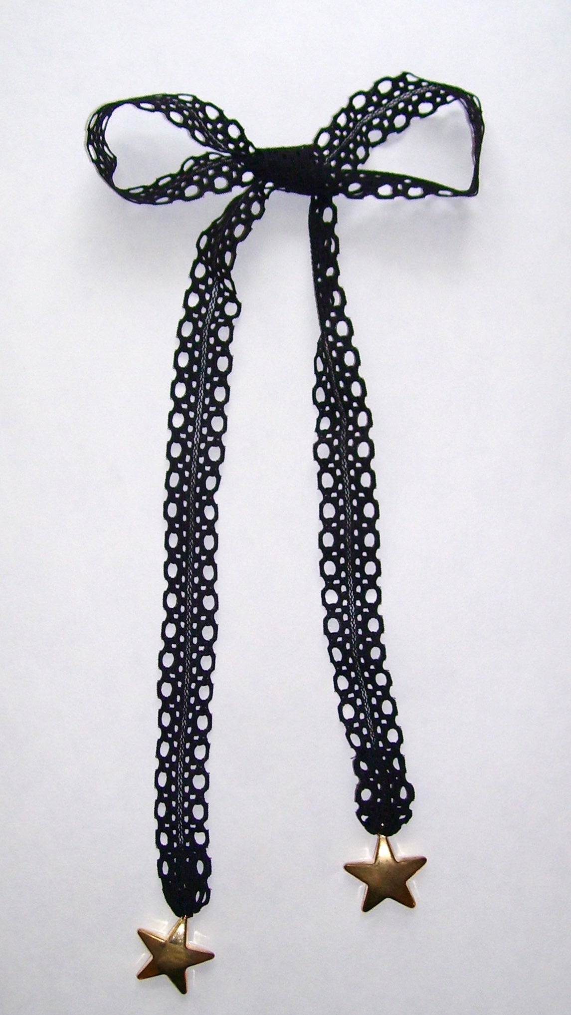 Vintage lace ribbon adorned with two chunky vintage star pendants